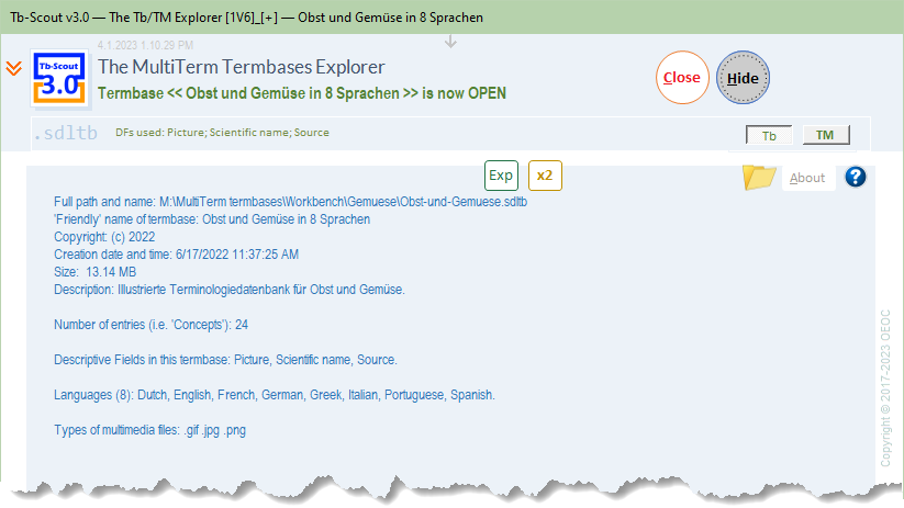 To remove this pane, click [Hide], or press Alt+H. Do not click [Close] unless you want to close the Termbase currently opened.